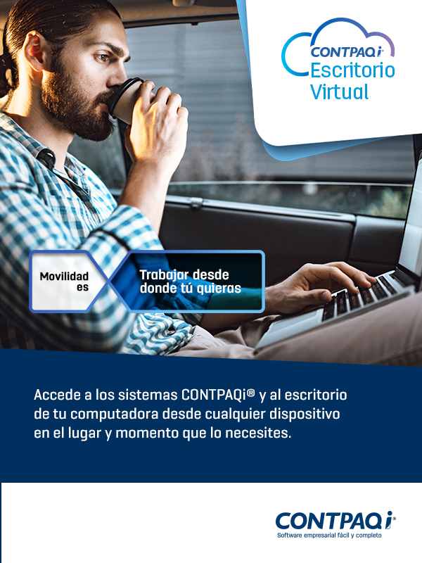 Es un producto en la nube, como un escritorio físico, que sirve para utilizar los sistemas CONTPAQi®, así como diferentes programas y herramientas de trabajo desde cualquier lugar, pero ahora tu información estará almacenada en un servidor virtual. De esta manera, tu empresa puede beneficiarse de múltiples ventajas, como la seguridad de la información, la movilidad y el control de tus procesos.